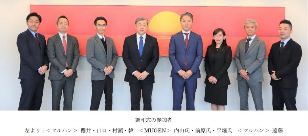 私たちは、MUGENの企業理念 「 すべての人の「幸せの力」に!! 」 と、マルハングループの経営理念「 人生にヨロコビを 」 を掛け合わせ、共に成長戦略を描いていけると確信しております。