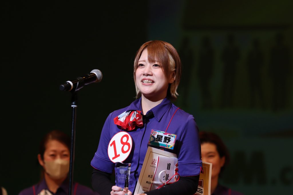 「昨年グランプリをいただきましたが、それでも自信を持てない瞬間がありました。しかし、どこにいても、どんな場所でも、お客様とともに喜び、楽しむことができる。そして、お客様に心から楽しんでいただける。そのような自信を、今日持ち帰ることができます!これからも日々努力を重ね、成長し続けてまいります。」