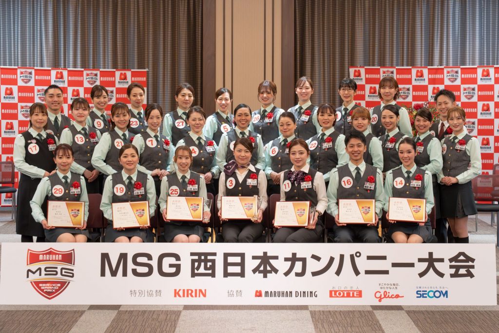 西日本カンパニーが管轄する20府県(兵庫県・大阪府・京都府・奈良県・和歌山県・滋賀県・岡山県・広島県・山口県・鳥取県・愛媛県・香川県・高知県・福岡県・長崎県・大分県・熊本県・佐賀県・宮崎県・鹿児島県)の全102店舗から3,038名のスタッフが参加しました。各店から選出された店舗代表者によるエリア大会・ブロック大会を勝ち上がった29名のファイナリストが西日本カンパニー大会に挑み、グランプリは昨年に引き続き橿原北店の大井りえさんが選ばれました。準グランプリは梅田店の上西柚奈さん、第3位は新世界店の四津智子さんでした。